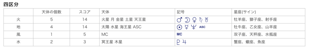 ざっくりとつかみたい時にエレメント(四区分)を参考にすると良いです!